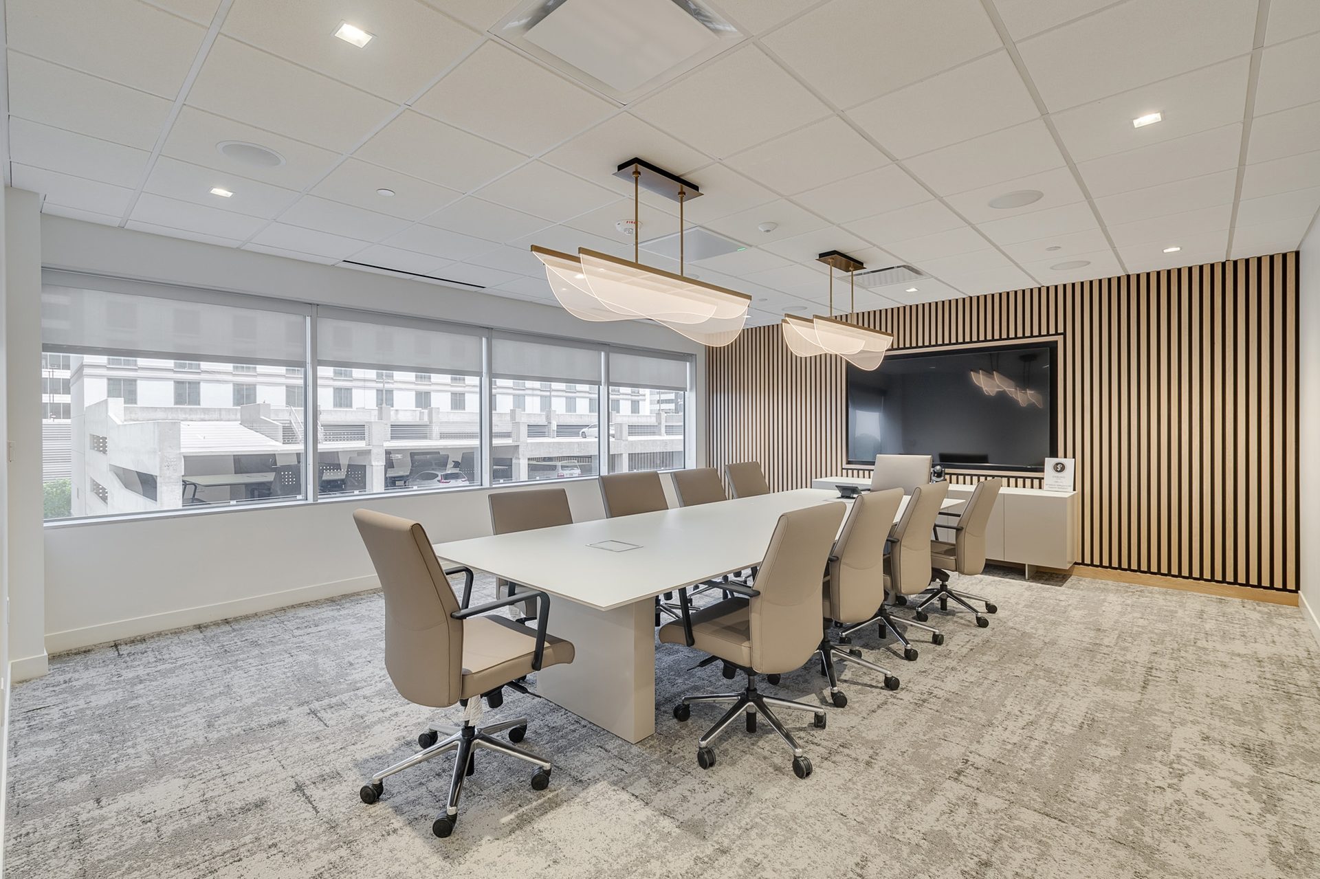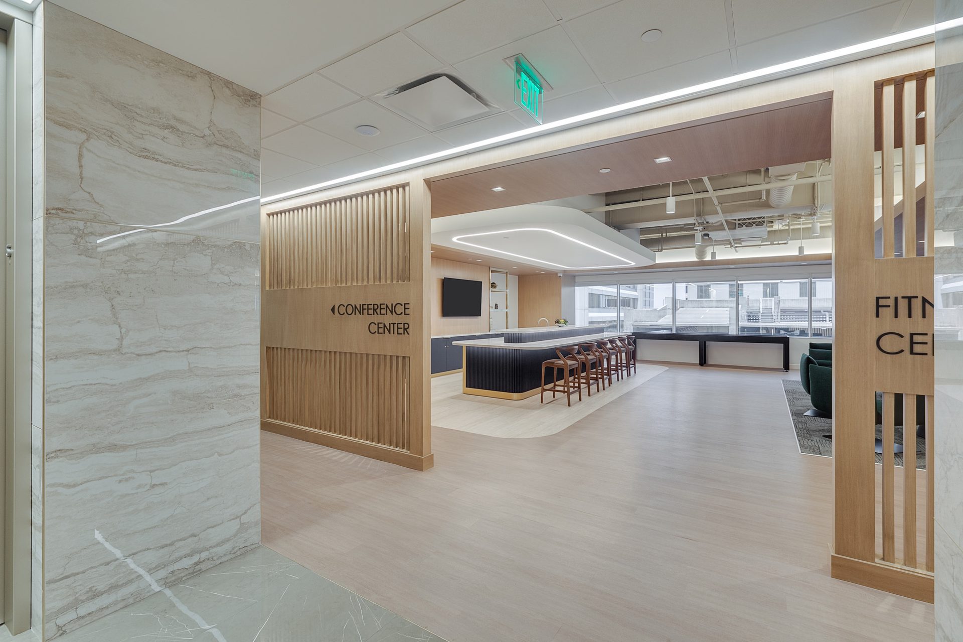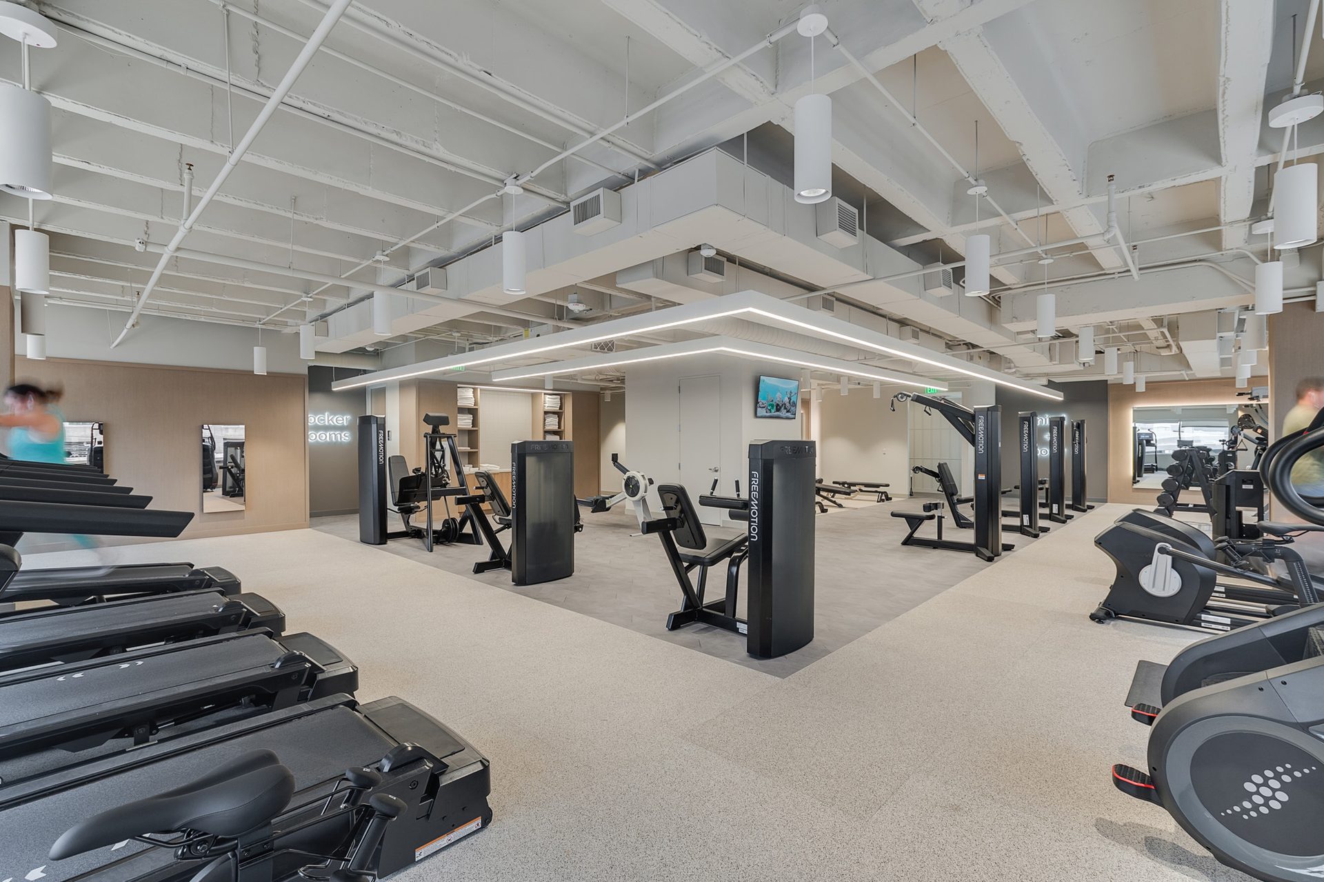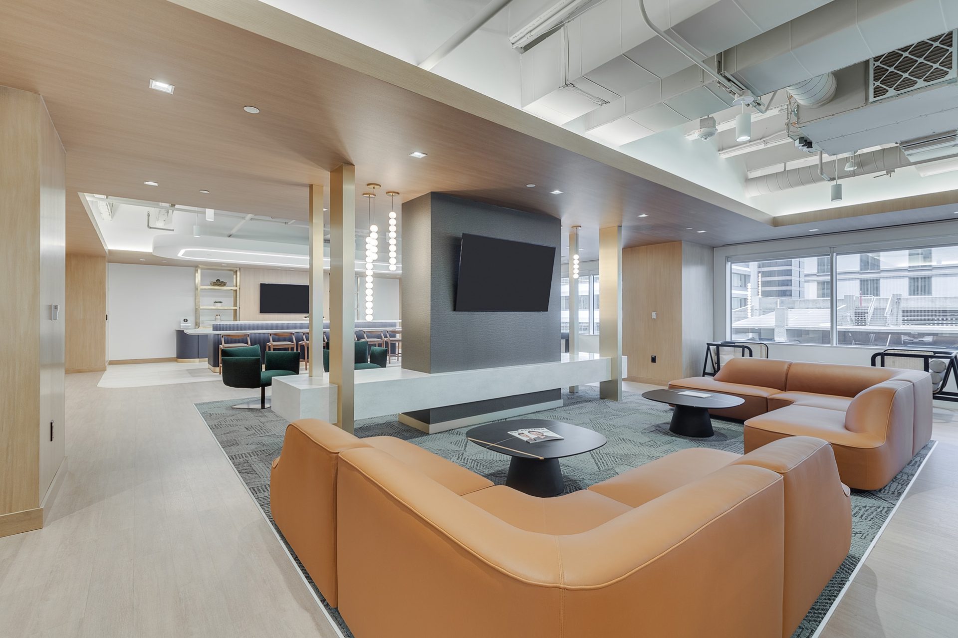 The property boasts a state-of-the-art fitness center, training center, tenant lounge with coffee bar, and easy access to a six-level parking garage with charging stations.